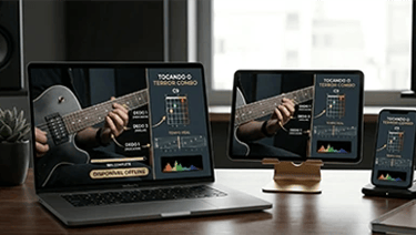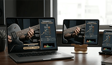 Fixe o aprendizado com riffs clássicos e músicas conhecidas, tornando o estudo mais envolvente e prazeroso.